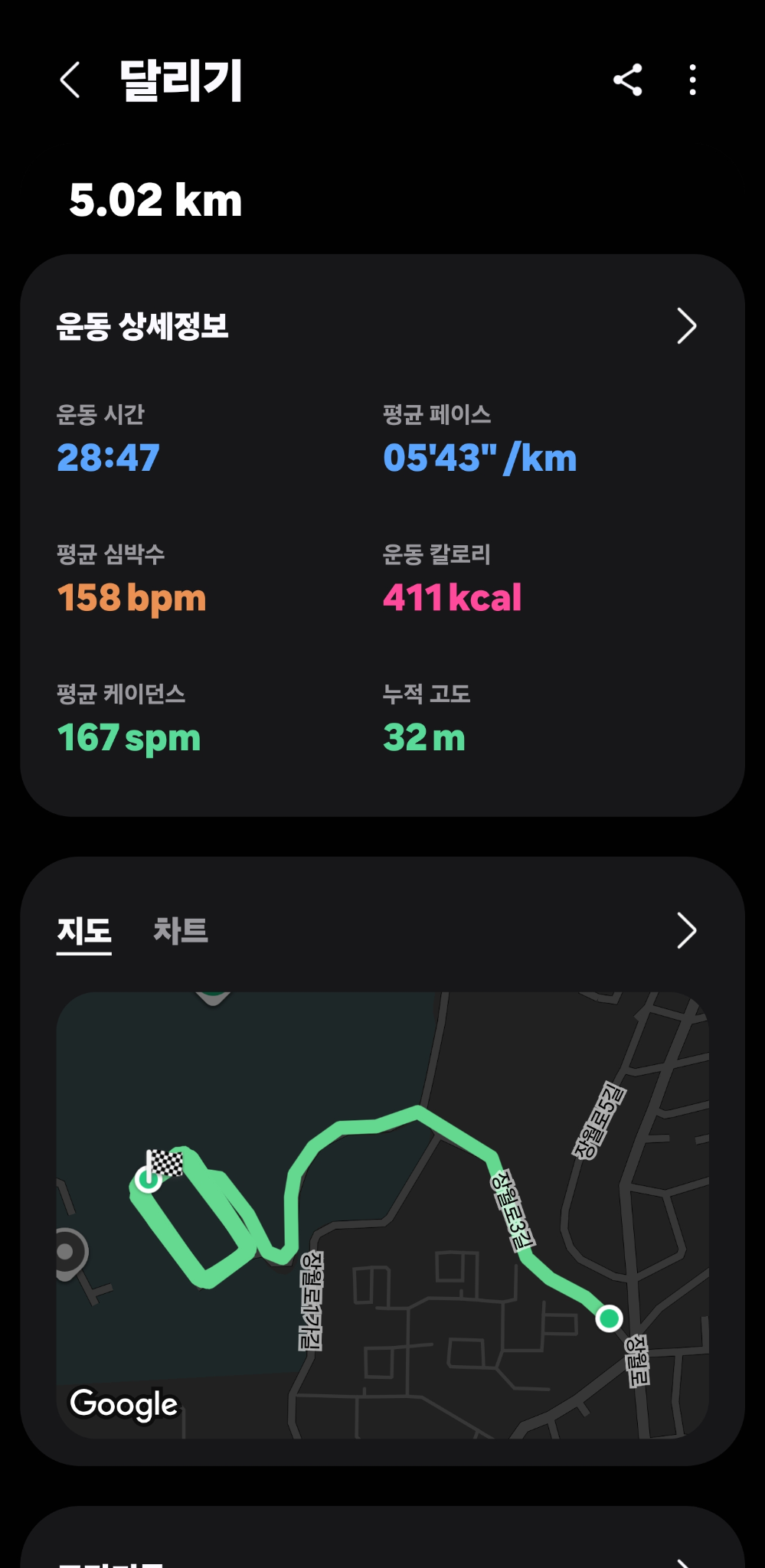 그리고 오늘 아침 러닝에서 5K 28:47을 찍으면서,
