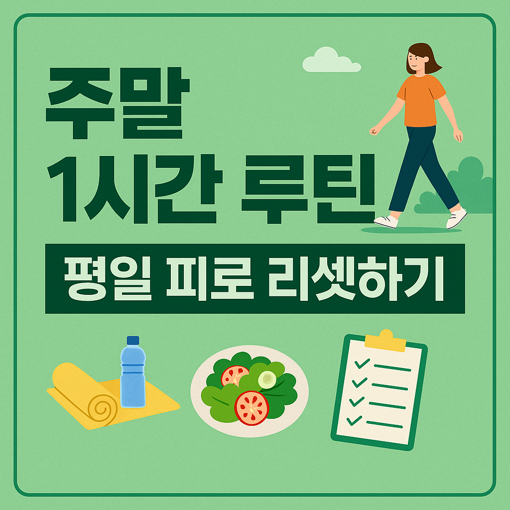 👋 주말, 어떻게 보내고 있나요?현대인에게 주말은 단순한 휴식일이 아니라, 한 주간 쌓인 피로를 회복하고 새로운 주를 준비하는 중요한 시간입니다.그런데 많은 사람들이 주말을 무의미하게 보내고 있습니다.늦잠을 자거나, 하루 종일 TV·스마트폰을 보거나, 기름진 음식을 먹으며 “쉬었다”고 생각하지만, 오히려 몸은 더 무겁고 마음은 더 지칩니다.그래서 월요일 아침마다 “더 피곤하다”라는 말을 반복하게 되는 것이죠.사실 주말은 단 1시간만 잘 활용해도 충분합니다.짧지만 효과적인 1시간 루틴을 만들면, 평일 동안 쌓인 피로를 풀고, 활력을 되찾아 새로운 한 주를 가볍게 시작할 수 있습니다.🌿 주말 1시간 루틴의 핵심 구성이번 글에서는 5단계 루틴으로 나누어 소개합니다.각 단계별로 5~15분씩만 투자하면 총 1..